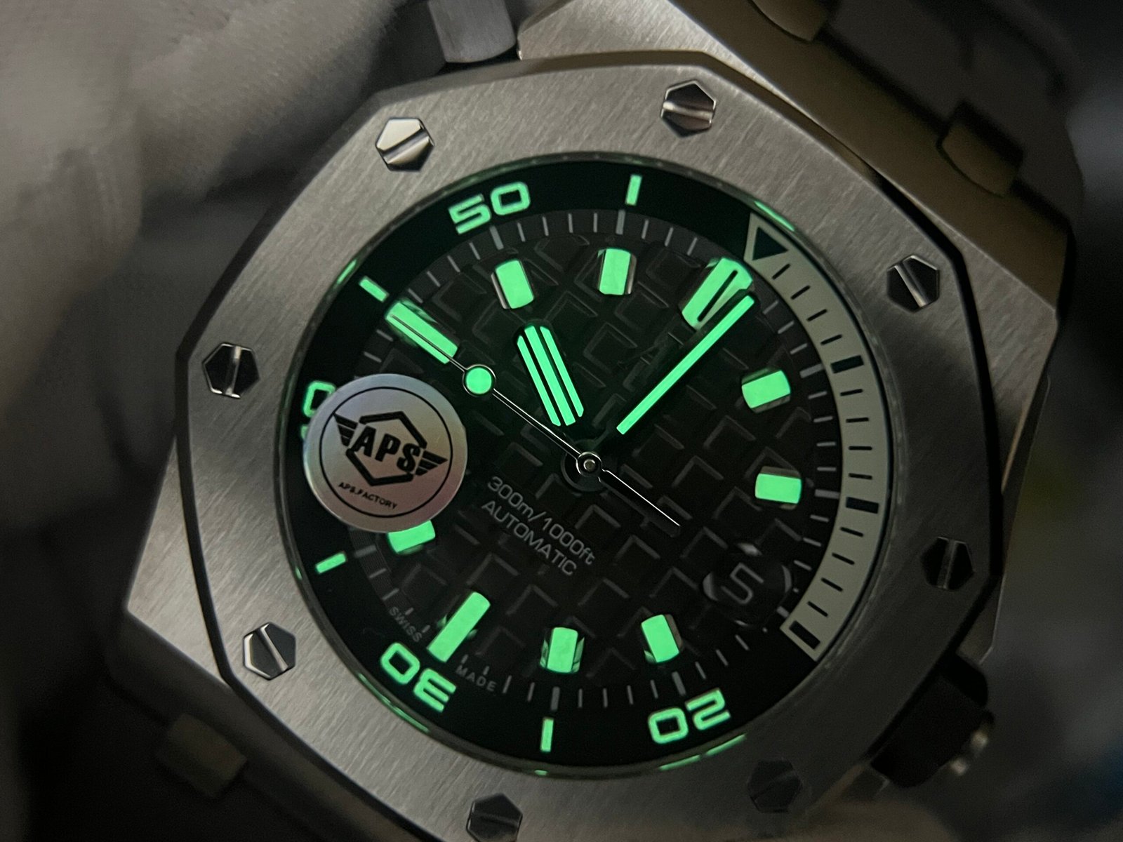 Dial:Grey Checkered Dial with Stick Markers (With SuperLume Applied)