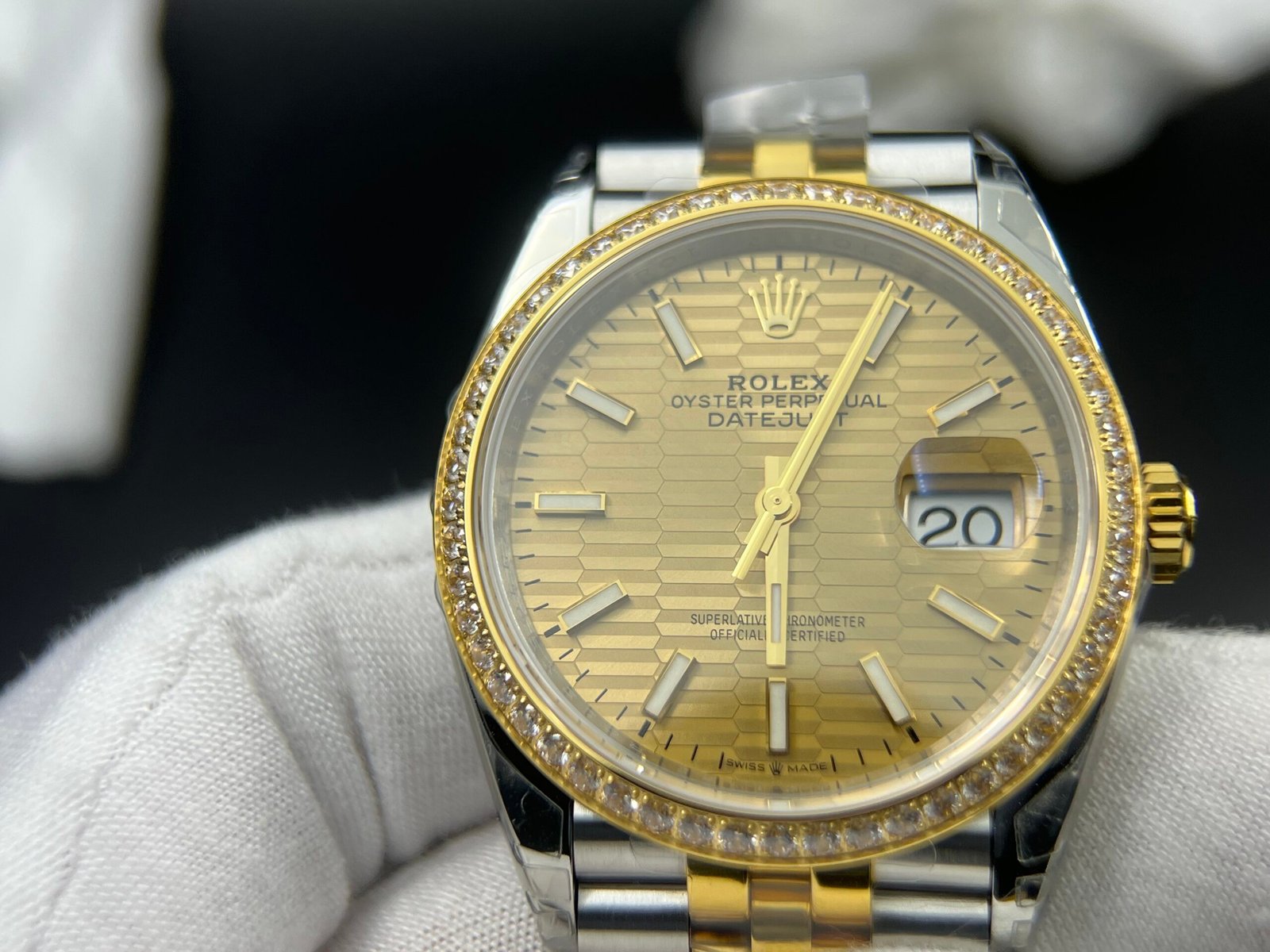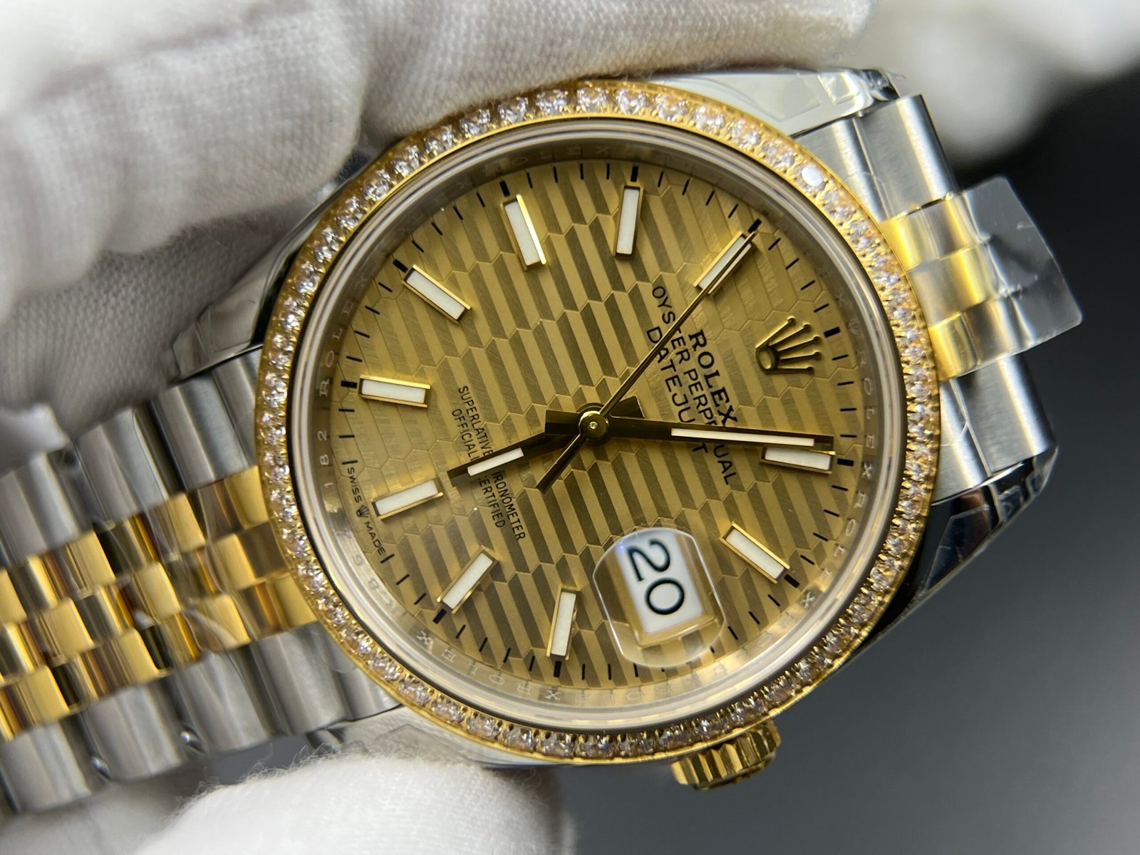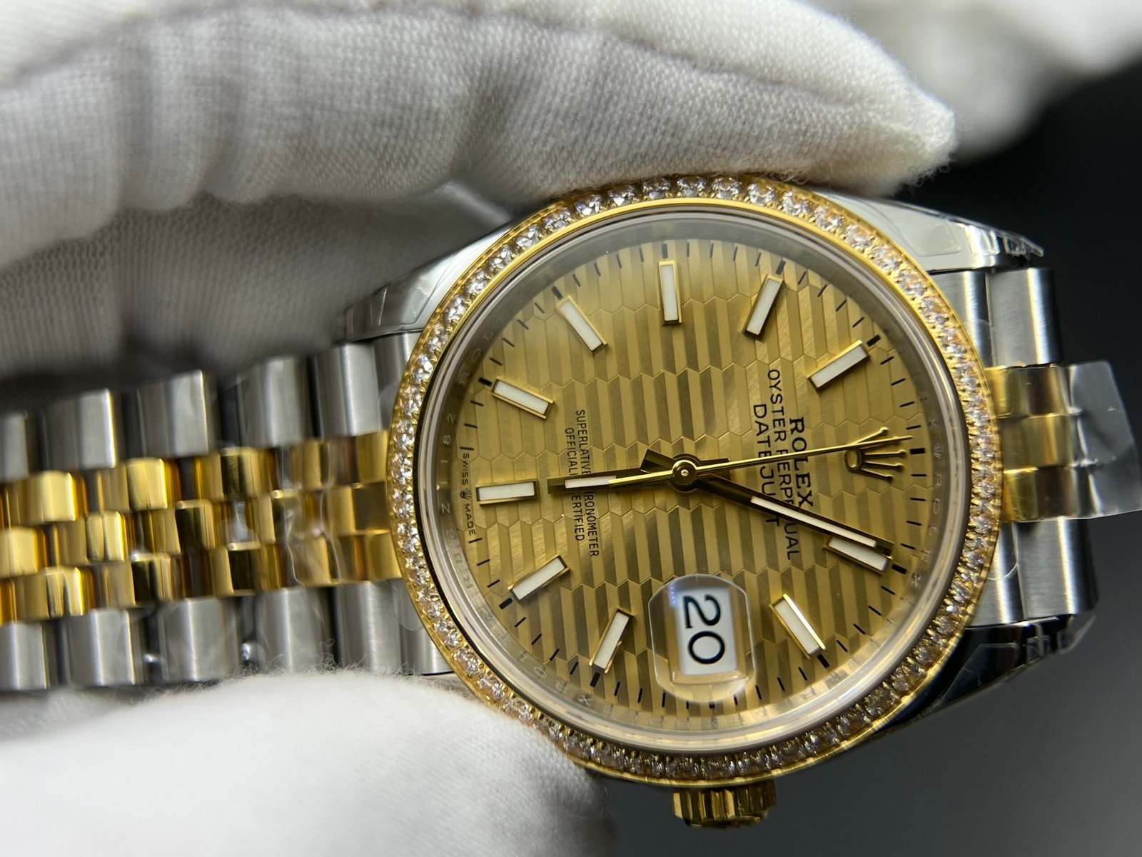 Strap:904L stainless steel jubilee bracelet with 18k yellow gold plated middle links