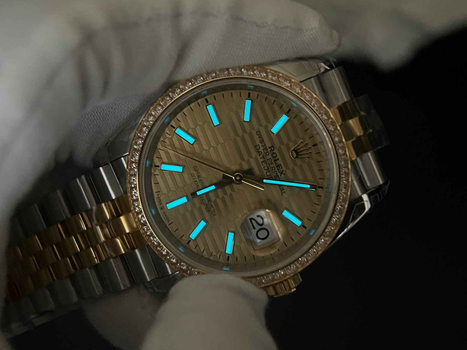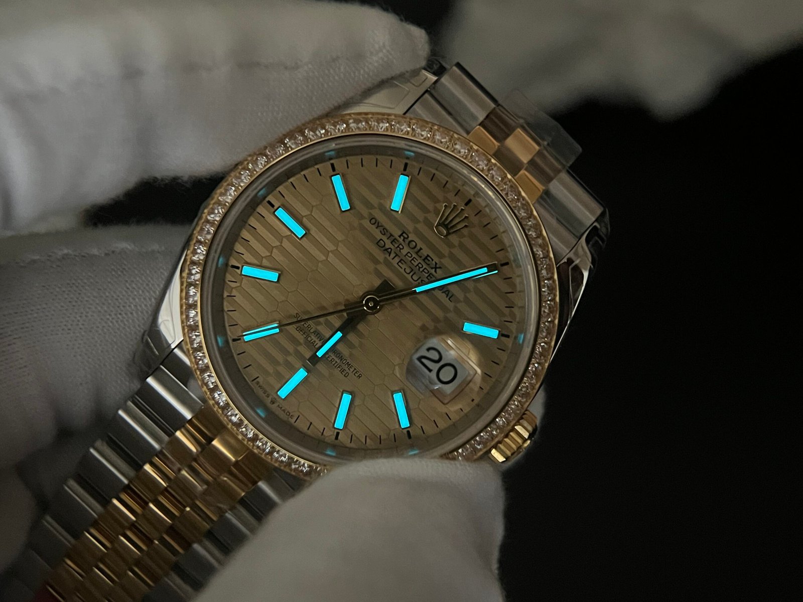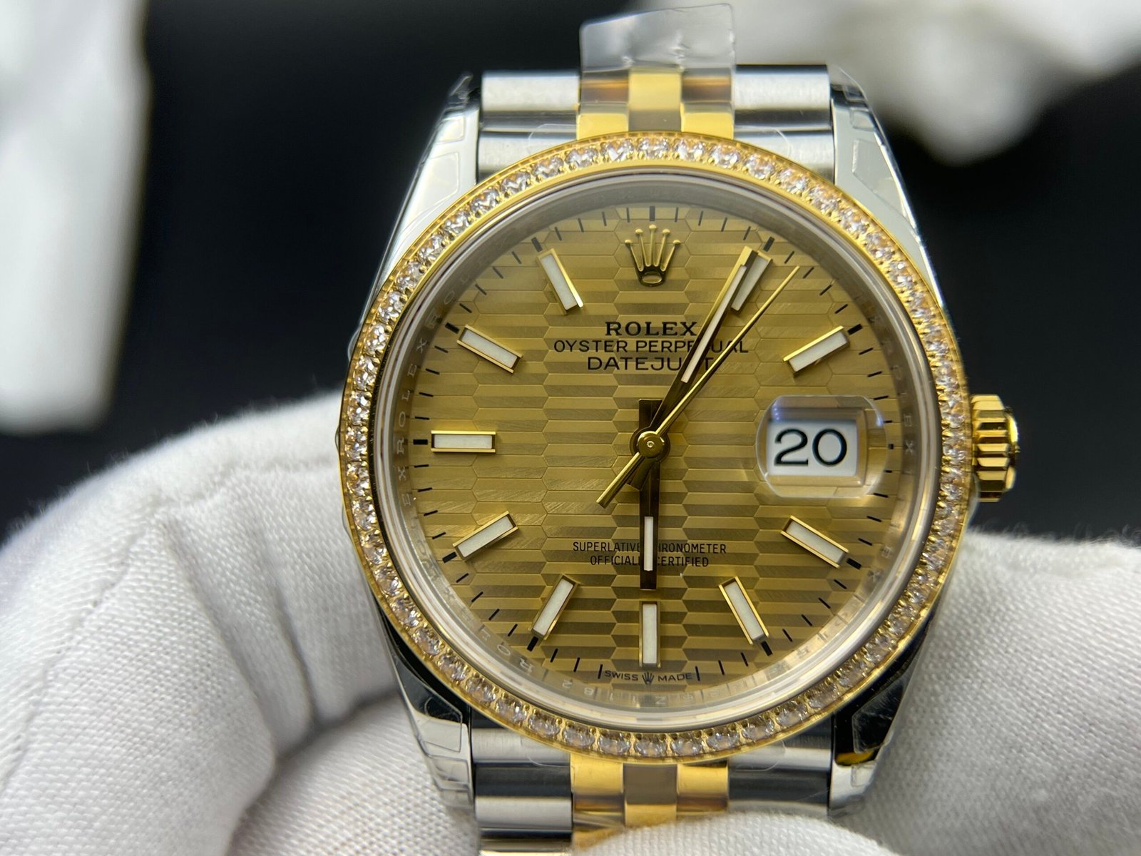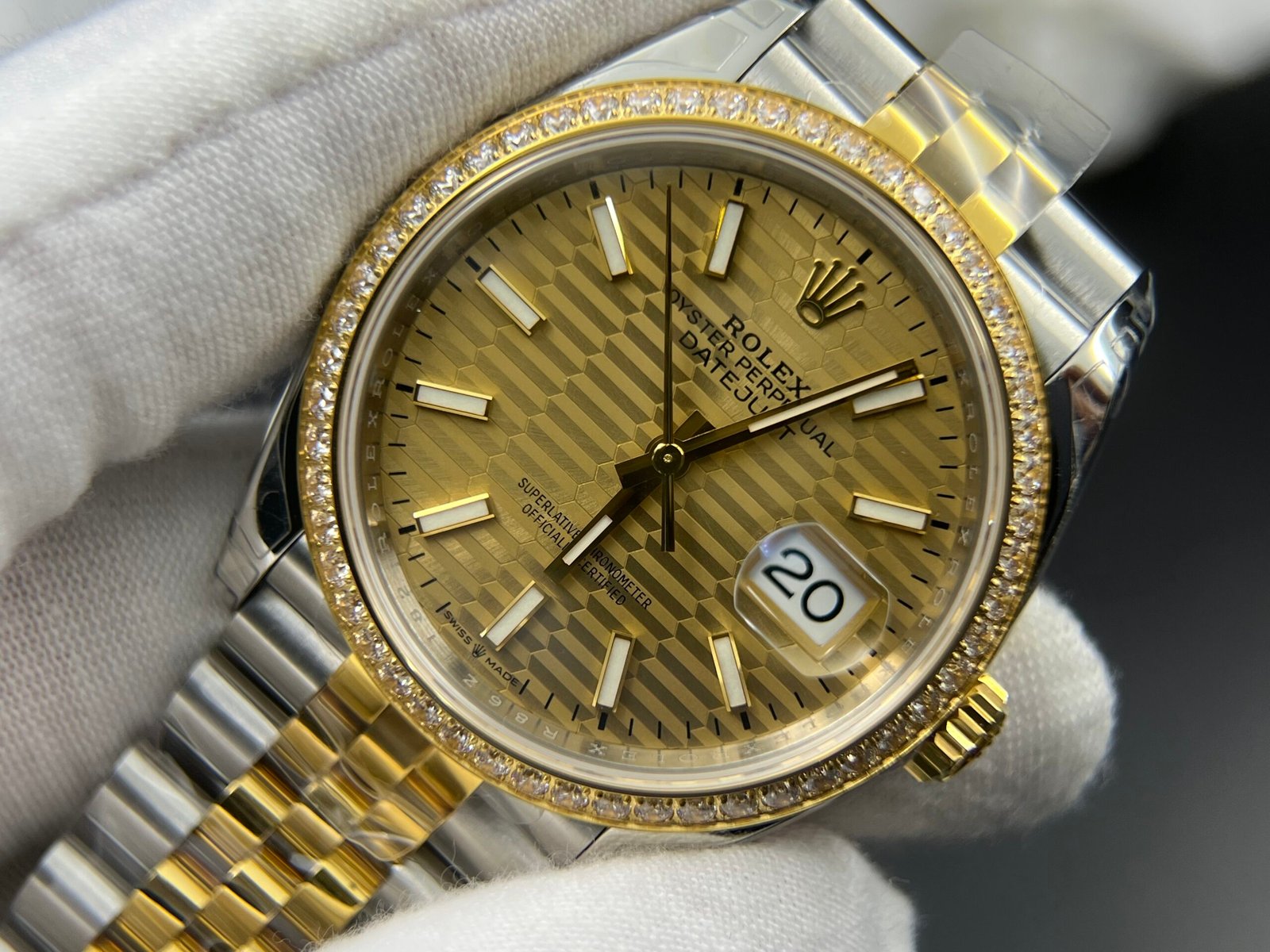 Strap:904L stainless steel jubilee bracelet with 18k yellow gold plated middle links
