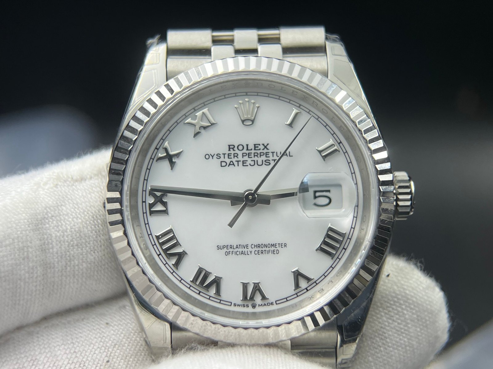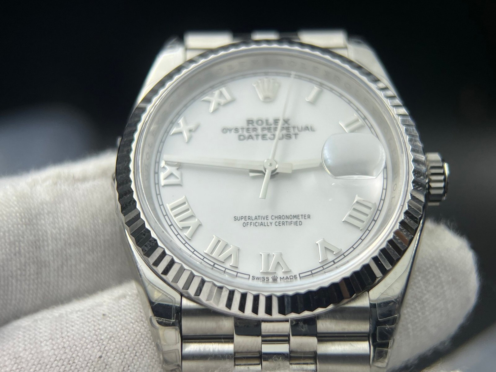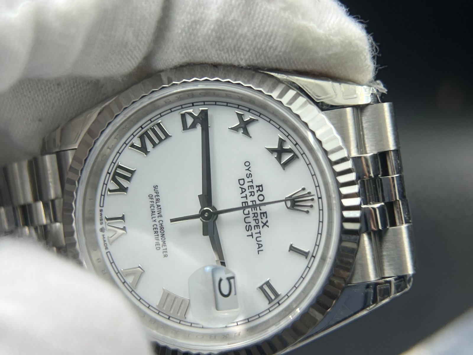 Dial:White Dial with Roman Markers (Blue Superlume Applied on Hands and Markers)