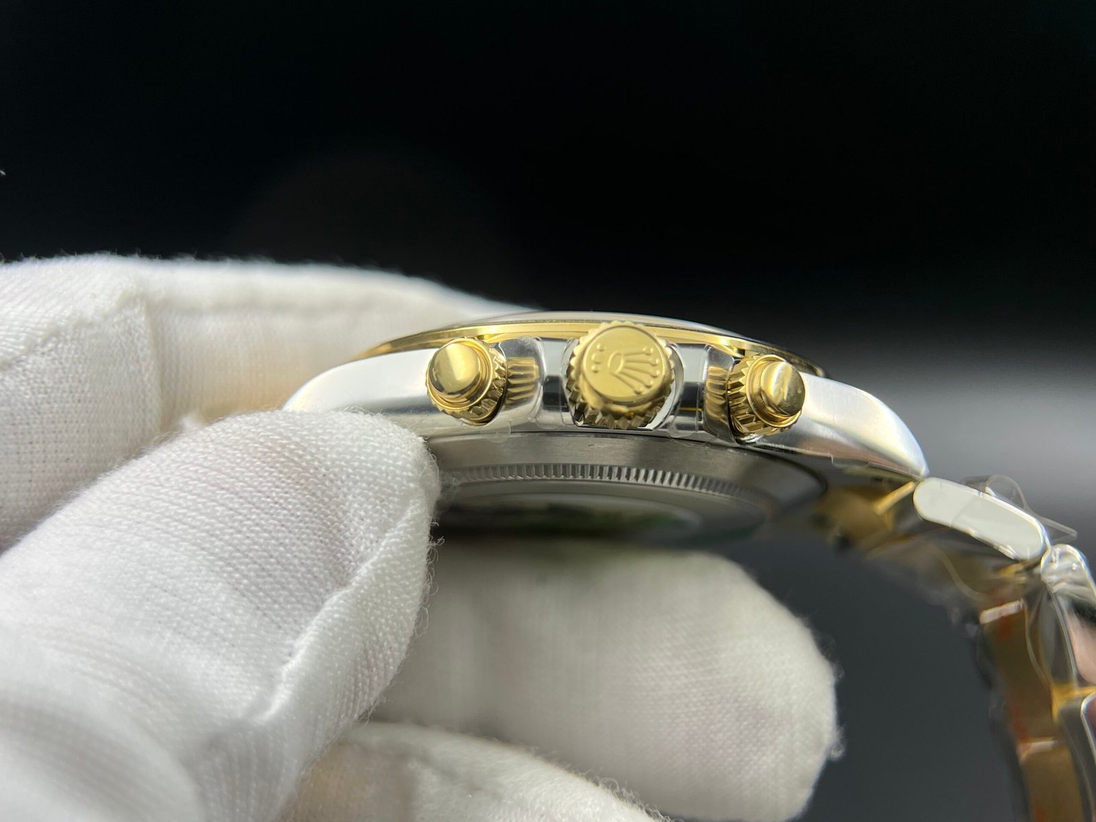 Strap:18K Yellow Gold Plated High Grade Solid Stainless Steel 904L Bracelet with Deployant Buckle