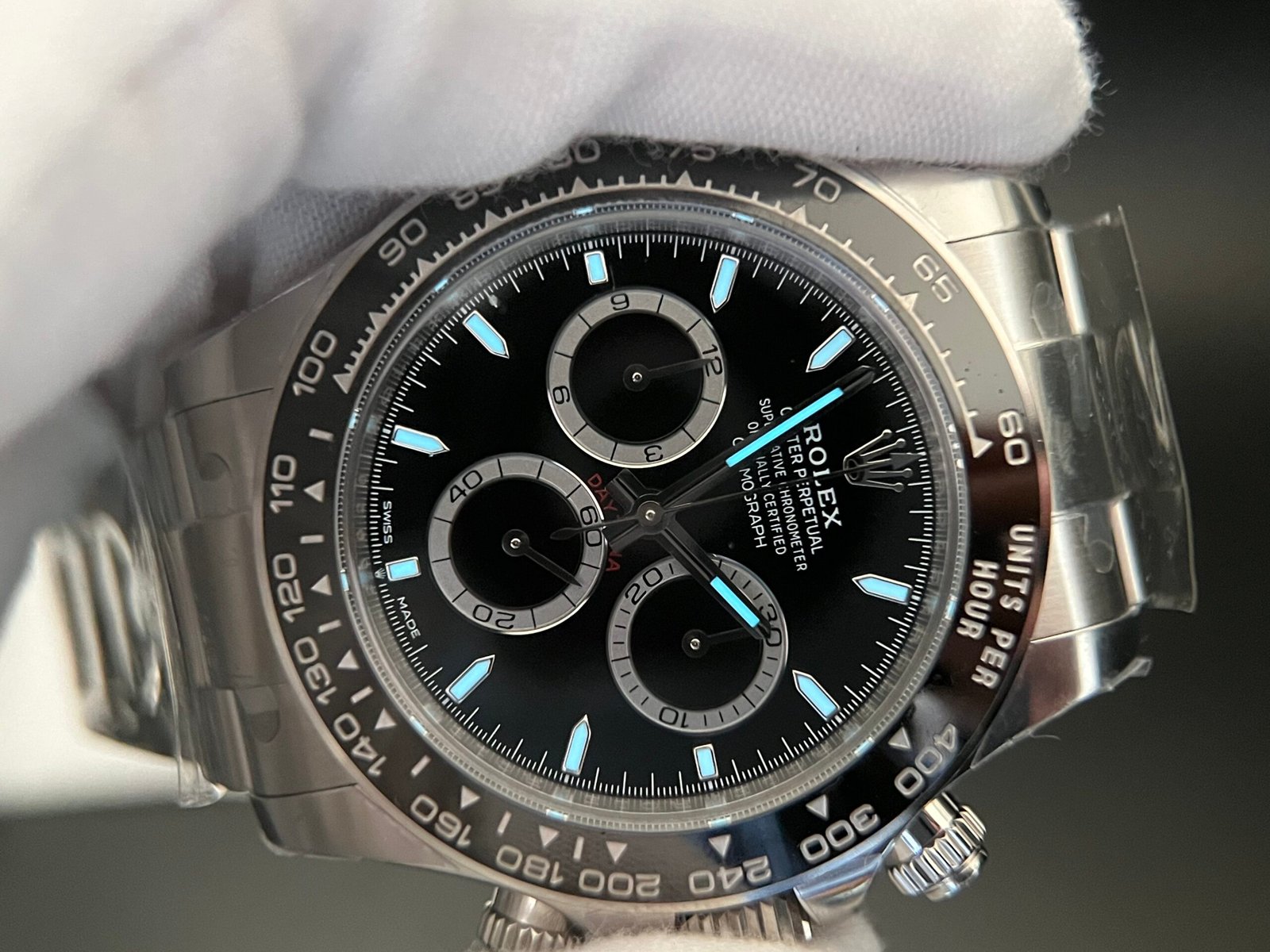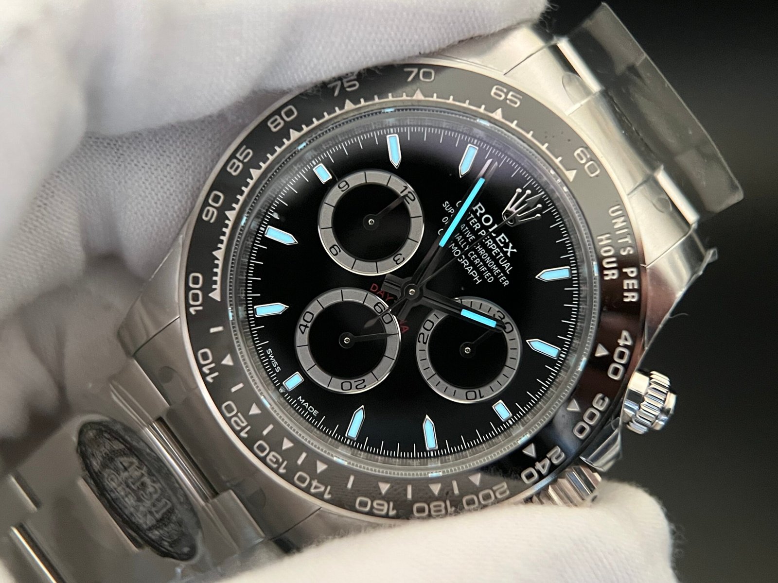 Dial:Clean Factory Superlumed black dial and hands in correct blue color (Best aftermarket replica Daytona Dial)