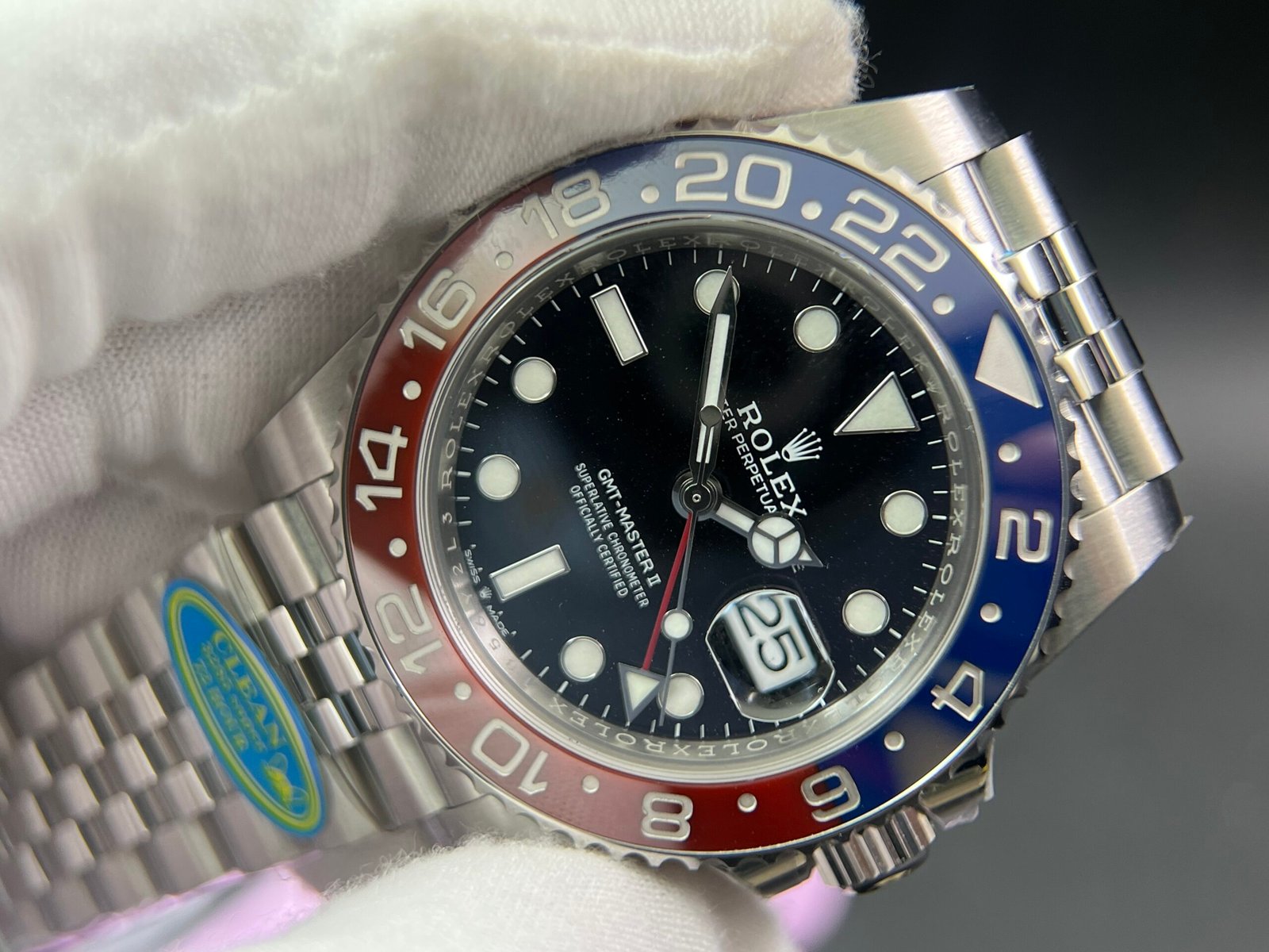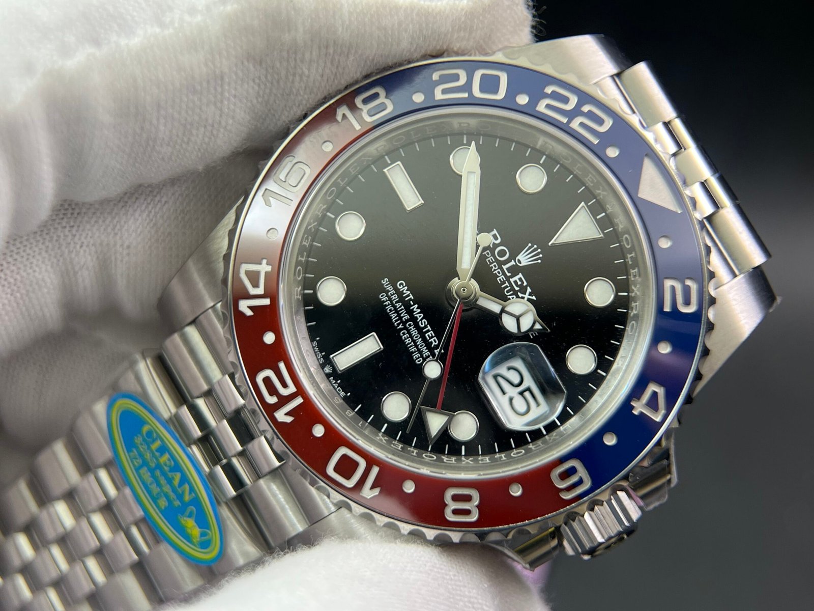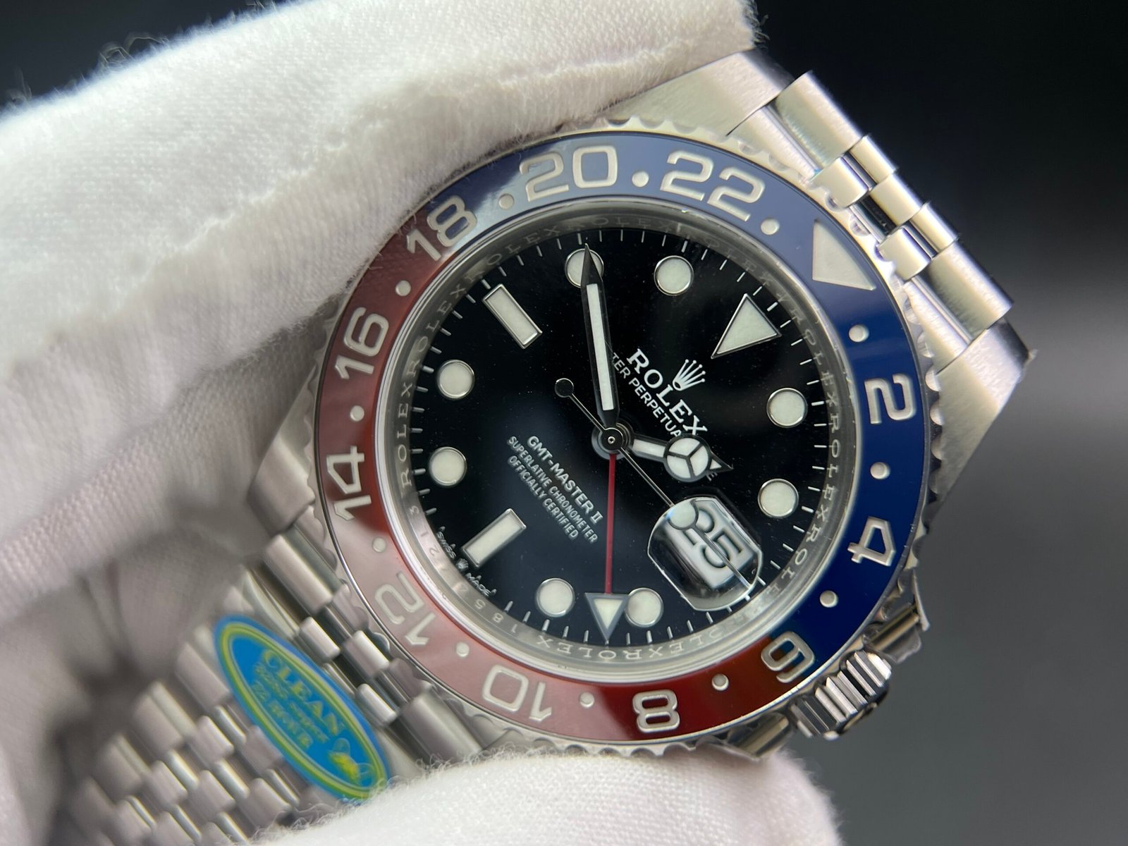 Bezel: Red/Blue Ceramic Bezel with Platinum coated numerals (CF Newest Version Pepsi Bezel)