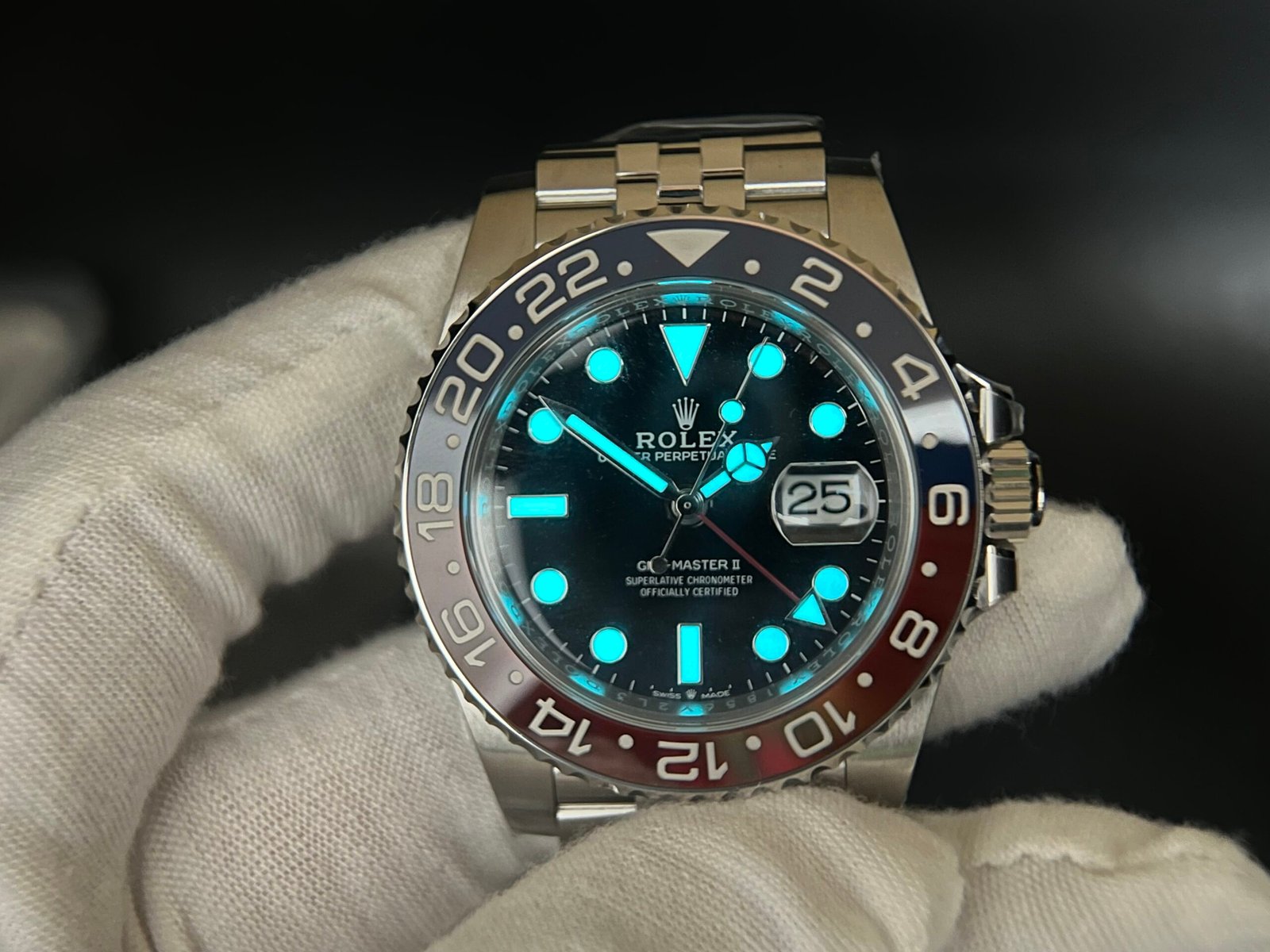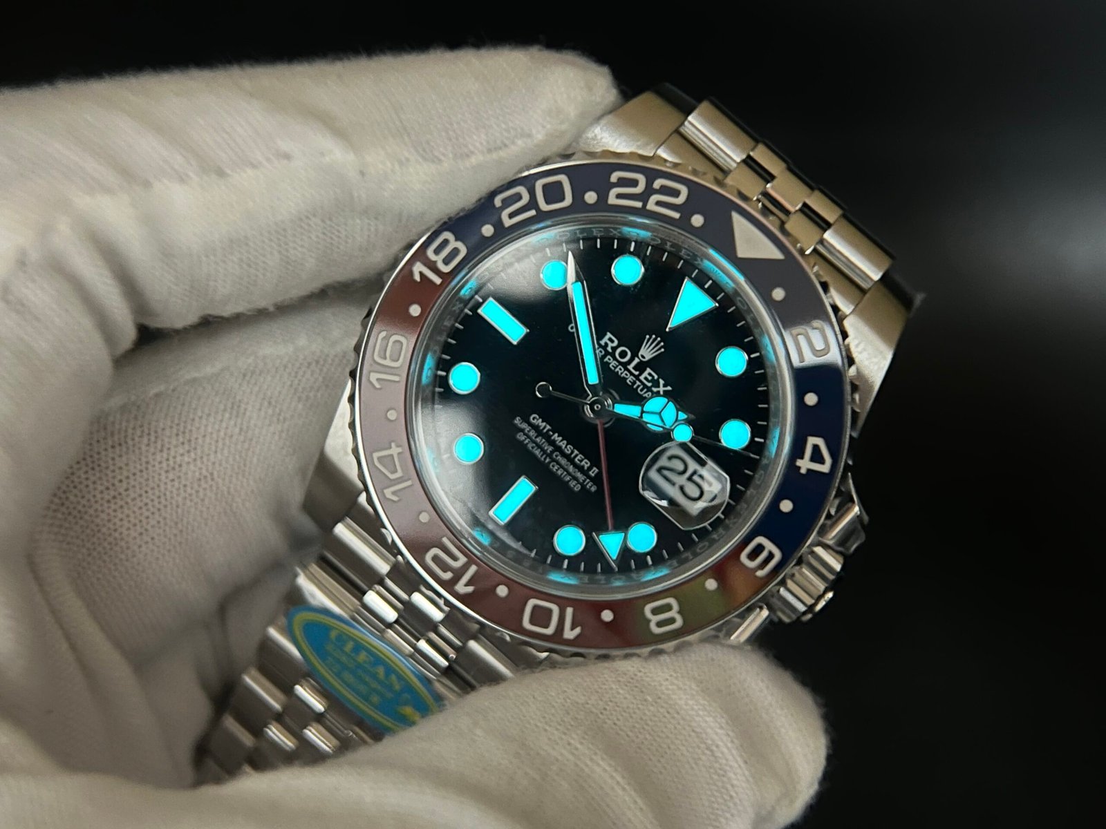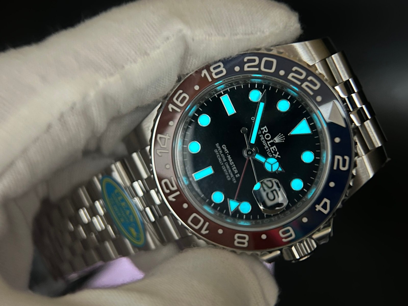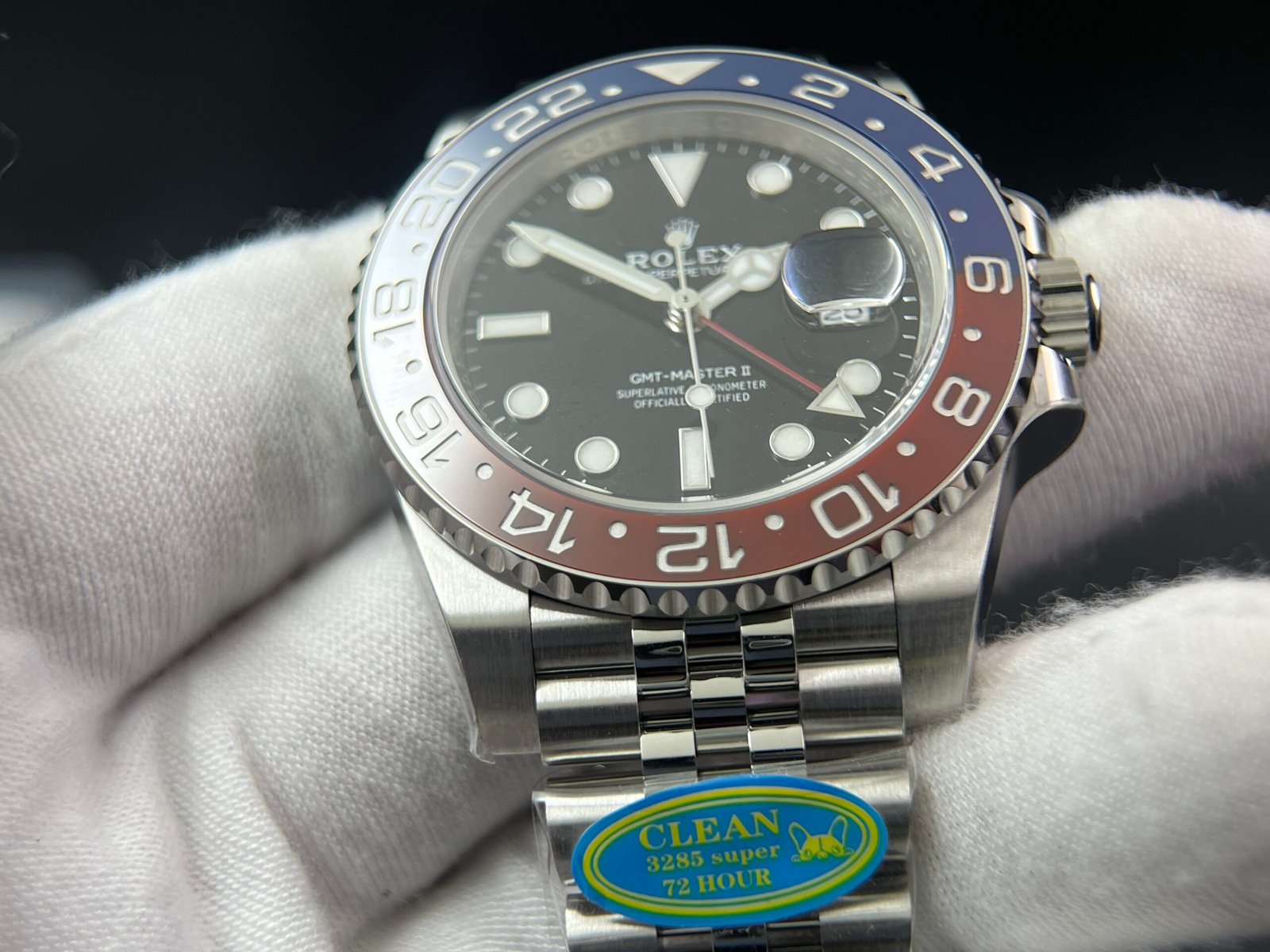 Bezel: Red/Blue Ceramic Bezel with Platinum coated numerals (CF Newest Version Pepsi Bezel)