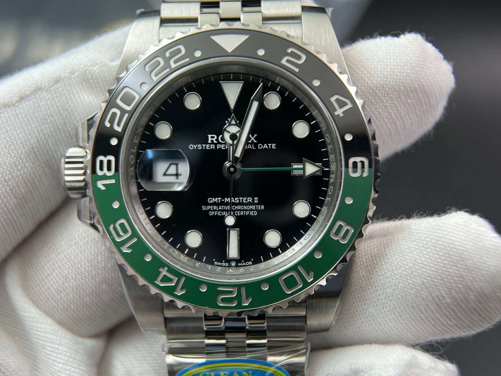 Movement: Asian Super Clone Dangdong 3285 Automatic Movement at 28800 vph, Correct Handstack, self-winding, independent adjustable hour hand to set the date, 70+ hours power reserve