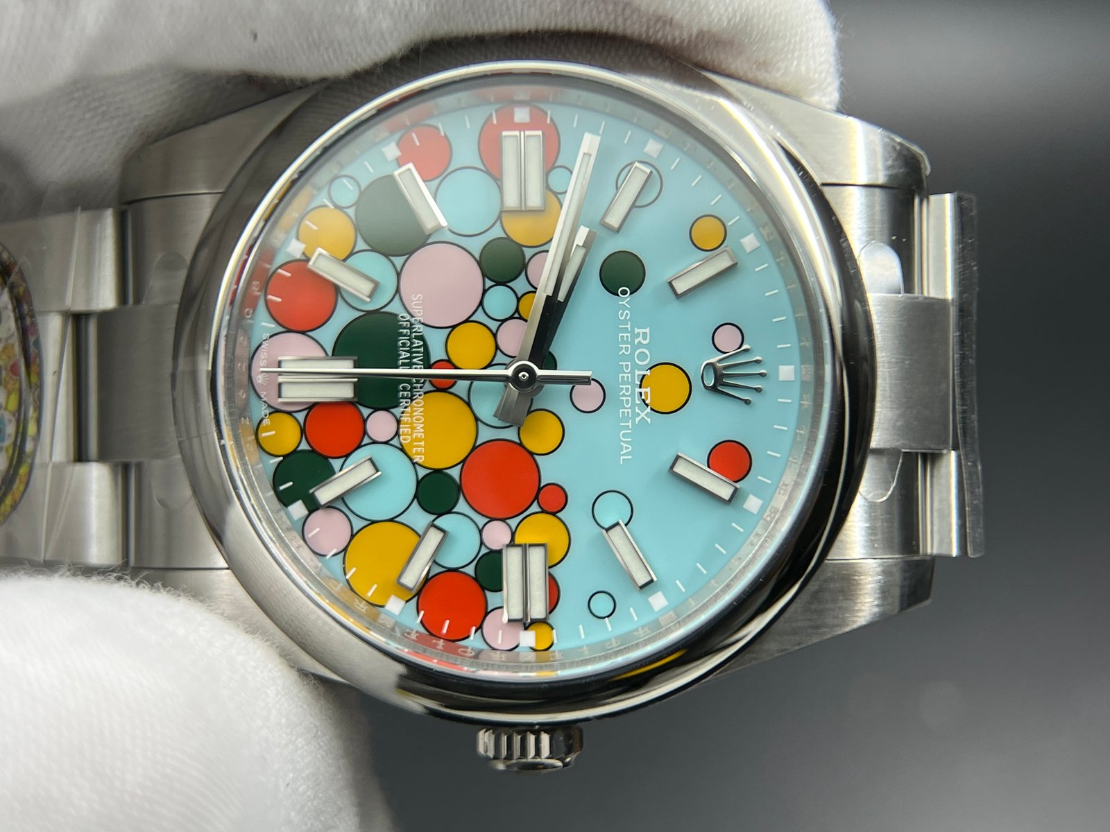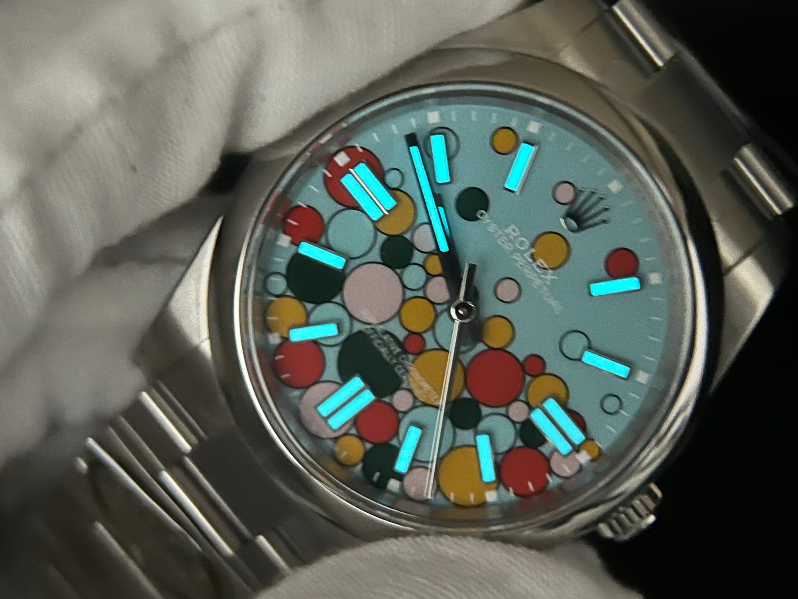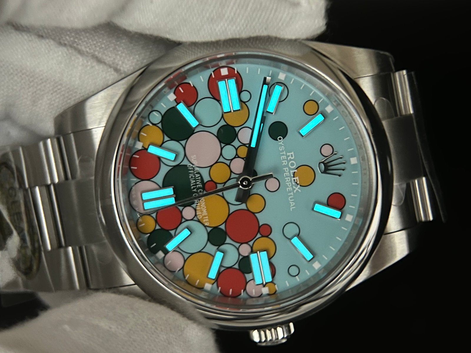 Dial:Bubbles Dial with Stick Markers (With Swiss Grade Superlume in Blue)