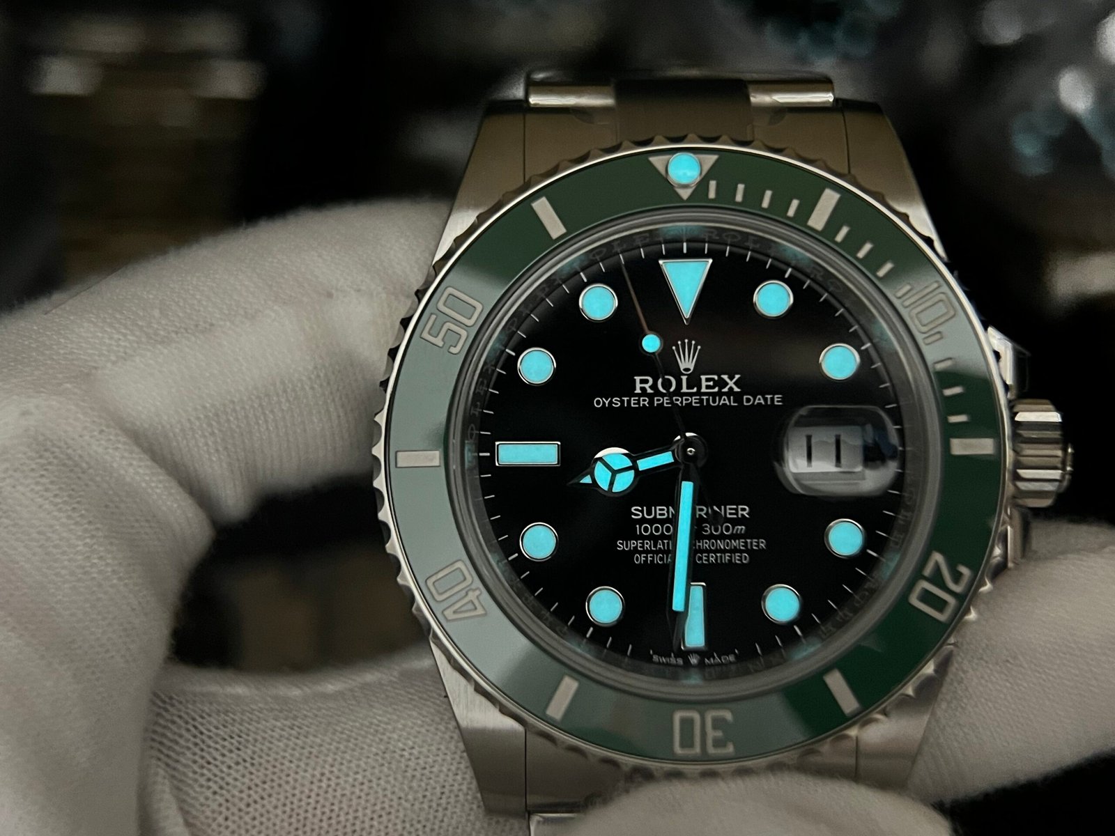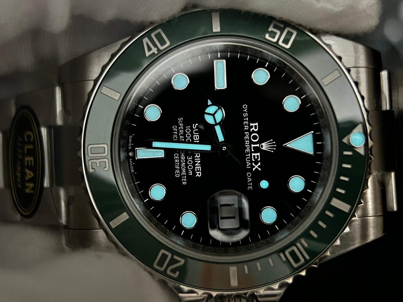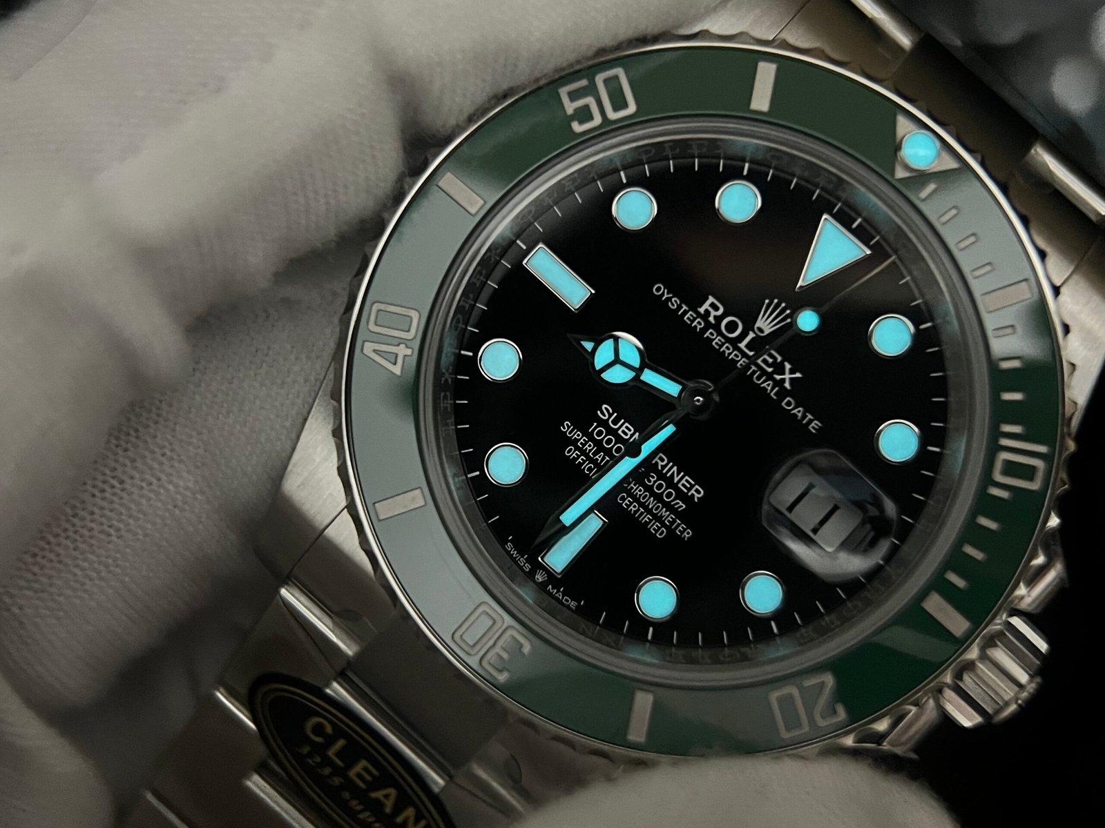 Bezel:Clean Factory Newest Green Uni-directional Diver Ceramic Bezel, Anti-Clockwise with Superlume on Bezel Dot