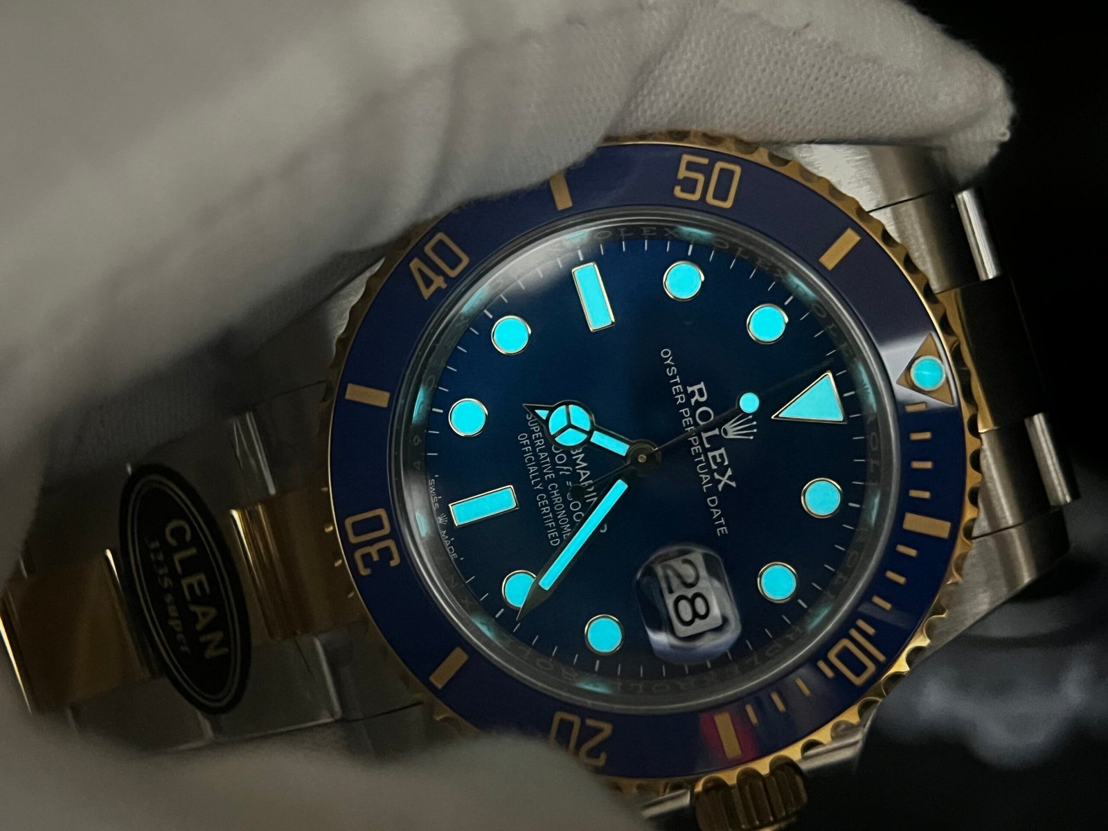 Bezel:Gold Plated Blue Uni-directional Diver Ceramic Bezel, Anti-Clockwise (With Superlume on Bezel Dot)